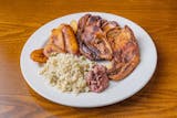 Con Arroz, Frijoles, Ensalada. Grilled chicken marinated in olive oil & lemon.